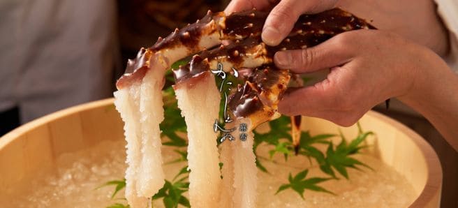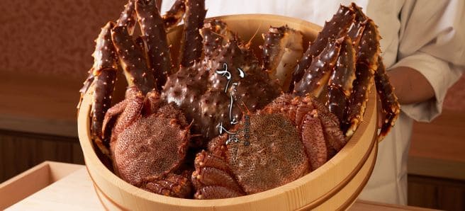 北海道の恵みと捌きたての蟹を、専属料理人の技を目の前にしながら堪能できる特別な二室のみの空間。ここでしか出会えない蟹料理の新境地が広がります。